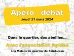1er mars 2024, par NicolasPour découvrir comment les abeilles vivent en pleine ville, apéro-débat ouvert à toute personne intéressée, jeudi 21 mars de 18h30 à 20h à la Maison de quartier de Saint-Jean.