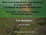 Vendredi 10 janvier à 14h à la Maison de quartier de Saint-Jean, présentation du recueil collectif Les fontaines par l’association des écrivains auto-édités.