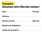8 mai 2019, par NicolasLa Ville organise un concours intitulé « Dessinez votre fête des voisins », pour deux catégories d’âge, les 4-15 ans, et les 15 ans et plus. Délai de reddition du dessin le 15 mai à midi.