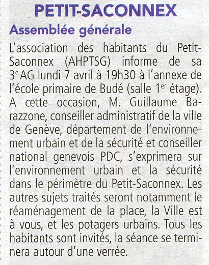 3e AG de l’AHPTSG, lundi 7 avril à 19h30