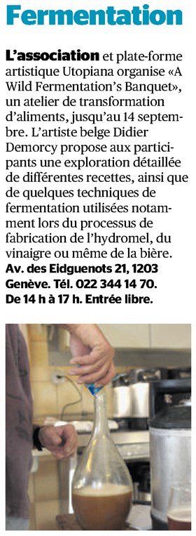 Fermentation Utopiana | Tribune de Genève | Mercredi 9 septembre 2015 | Suivez le guide | Séverine Géroudet et Gabrielle Cottier | page 34
