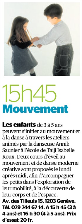 Ateliers danse | Tribune de Genève | Lundi 6 janvier 2014 | Suivez le guide | Séverine Géroudet et Gabrielle Cottier | page 22