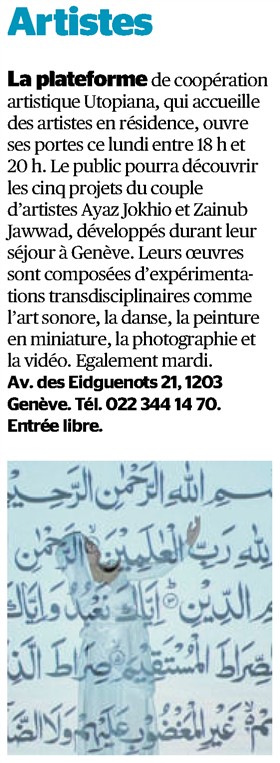 Utopiana Artistes | Tribune de Genève | Lundi 18 Novembre 2013 | Suivez le guide | Séverine Géroudet et Gabrielle Cottier | page 30