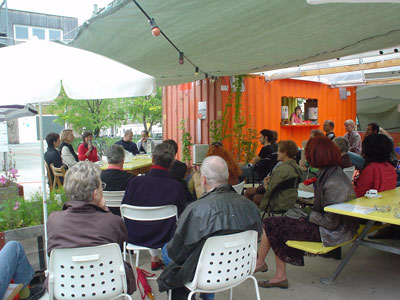 Après presque 4 mois d’existence, la Terrasse du Troc a mis fin à son activité le 17 septembre. Les containers orange ont été enlevés, les bacs de légumes et de fleurs aussi, les guirlandes d’ampoules colorées, les chaises longues... Plus de buvette, de jardins, de lectures, de projections de films, d’ateliers artistiques... Plus de débats sur le jardinage, l’alimentation, le tag et le graffiti, ou l’artiste social, plus de tournois de pétanque avec DJ’s, ni de concert d’accordéons, ni de juke box humain, plus de pièces de théâtre ou de lectures en plein air, plus de Gazoza au pamplemousse ou à la myrtille, de tartines du soleil pour l’apéro, de bière au gingembre ou d’eau gazeuse parfumée au sureau... Ne restent encore que les souvenirs des habitants, inscrits sur ces longues bandes oranges qui se déploient sur plusieurs centaines de mètres, mais bientôt, ces bandes disparaîtront aussi...