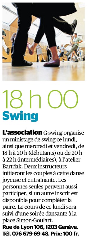 Danse Swing | Tribune de Genève | Lundi 29 juin 2015 | Suivez le guide | Séverine Géroudet | page 26