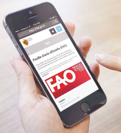 A Genève, ce sera pour le 1er janvier 2017. En clair, dès l’année prochaine, la version imprimée de la FAO disparaîtra pour laisser place à une nouvelle formule exclusivement numérique, publiant quotidiennement les avis officiels, également téléchargeables et imprimables sous format pdf, et offrant toutes les fonctionnalités de recherche avancée. Que les réfractaires au web se rassurent ! L’ensemble des avis officiels publiés dans la FAO numérique pourront également être consultés aux heures d’ouverture de l’accueil-information de l’Hôtel de Ville. Toutes les éditions de la FAO remontant jusqu’à 1774 sont quant à elles consultables aux Archives d’État de Genève (heures d’ouverture disponibles sur le site Internet de l’État)