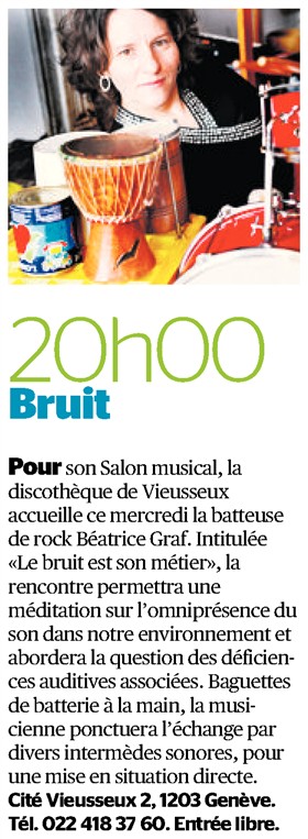 Batteuse de rock Béatrice Graf, à la Discothèque de Vieusseux- Mercredi 08 janvier à 20h00