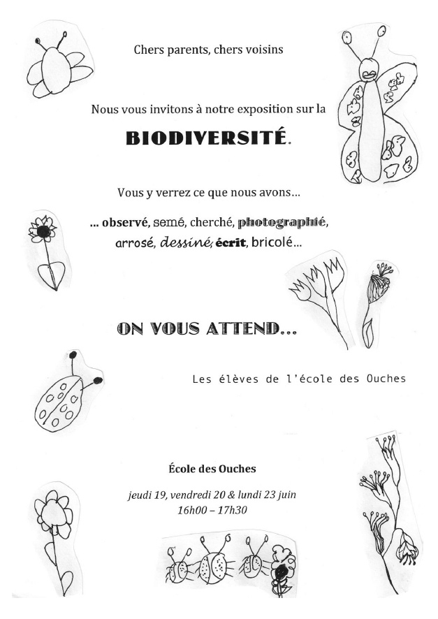 A l’école des Ouches, jeudi 19, vendredi 20 et lundi 23 juin, de 16h à 17h30.