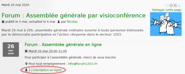 et vous pourrez vous inscrire à l’AG (ou vous excuser si vous ne pouvez pas participer) sur la page www.forum1203.ch/Forum-Assemblee-generale-par-visioconference.html, en cliquant sur [vert]inscription en ligne[/vert].