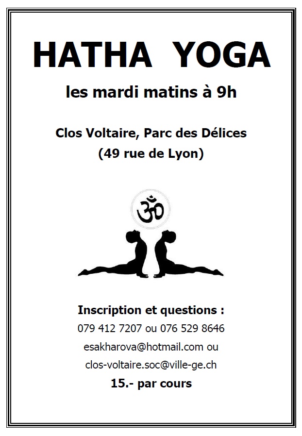 Les mardi matins à 9h au Clos Voltaire, Parc des Délices (49 rue de Lyon). Donné par Elena Sakharova, le cours convient aux débutants comme aux avancés. Vous pouvez venir chaque semaine, ou occasionnellement, comme vous le voulez.