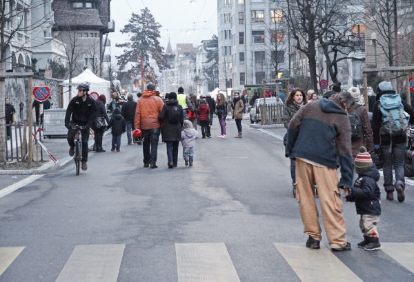 Cracheurs de feu et autres artistes de rue, musique, dessins de lumière, silhouettes d’enfants dansant sur la façade de l’école, habitants profitant, une fois n’est pas coutume, de la rue fermée au trafic durant une heure, distribution de boissons chaudes, sans oublier la partie officielle avec des discours de M. Rémy Pagani, conseiller administratif, et de M. Martin Gonzenbach, au nom du Groupe zone 30 et des parents d’élèves : l’inauguration de la rue de Saint-Jean, organisée par la Ville jeudi 30 janvier 2014 - et même si certaines choses sont vraiment à améliorer (cf. les réactions des habitants) - a eu fière allure !