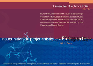 DIMANCHE 11 OCTOBRE 2009 DÈS 11 H. Inauguration du projet « Pictoportes » d’Albin Roos 7 avenue des Tilleuls (à côté de la pataugeoire de la couverture des voies CFF)