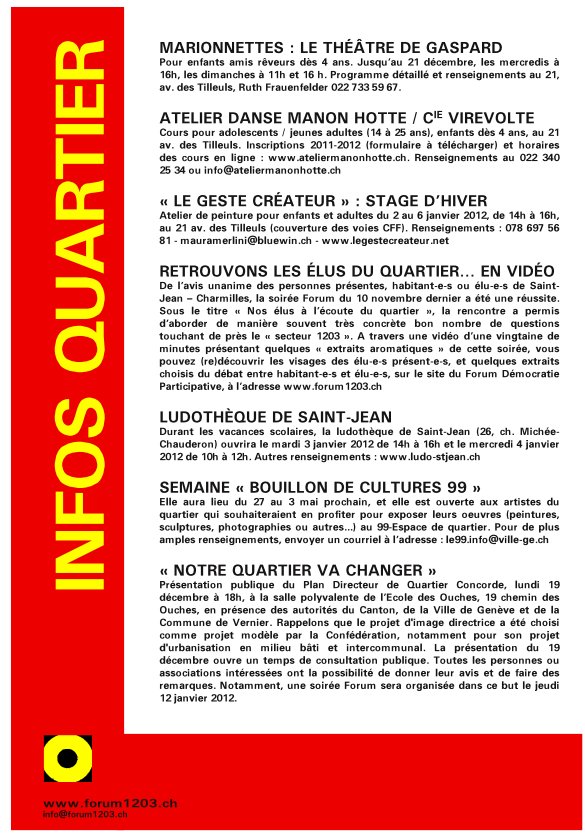 Infos quartier | Décembre 2011vendredi 20 janvier 2012, par