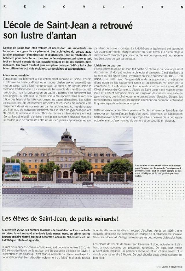 Accueil > Revue de presse > Vivre à Genève > L’école de Saint-Jean a retrouvé son lustre d’antan