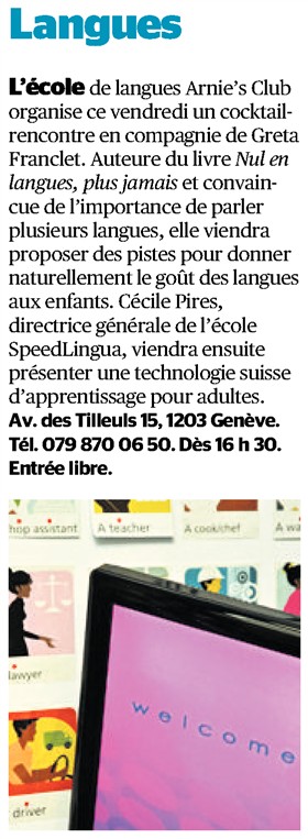 Greta Franclet : auteure du livre Nul en langues, plus jamais et convaincue de l’importance de parler plusieurs langues, elle viendra proposer des pistes pour donner naturellement le goût des langues aux enfants
