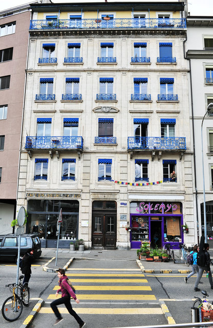 08/05/2014. Genève. Balade sur le thème des éco-quartiers. Ilôt 13.L’immeuble du 15-15 bis rue des Gares. Pierre Abensur/Tamedia