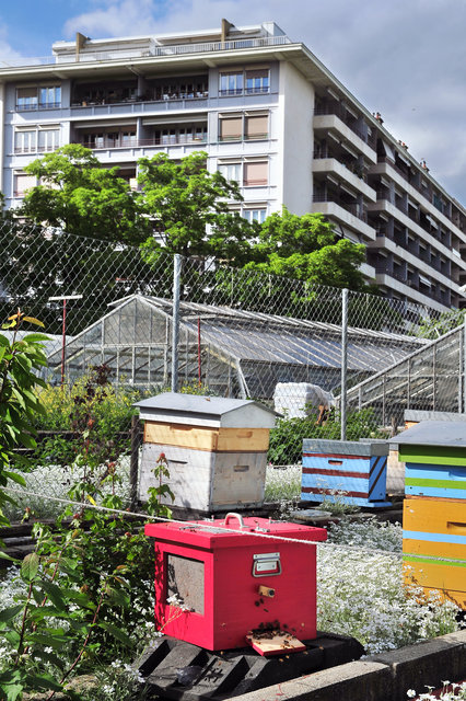 09/05/2014. Genève. Eco-quartiers. Un secteur du Parc Beaulieu est reservé aux jardins familiaux, parascolaires et associatifs. On y trouve également un rucher. Pierre Abensur/Tamedia