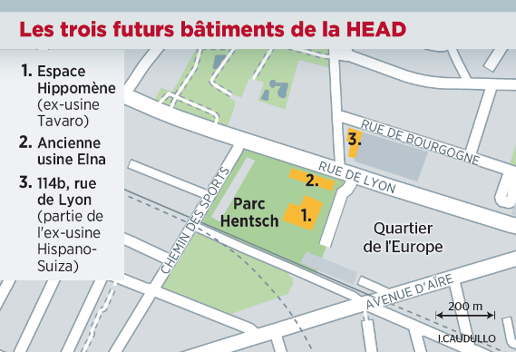 Cette vente concerne l’ancien bâtiment Elna, qui longe la rue de Lyon, ainsi que l’ancienne usine Tavaro, rebaptisée espace Hippomène, qui trône dans le parc Hentsch avec ses rutilantes façades rouges (voir l’infographie)
