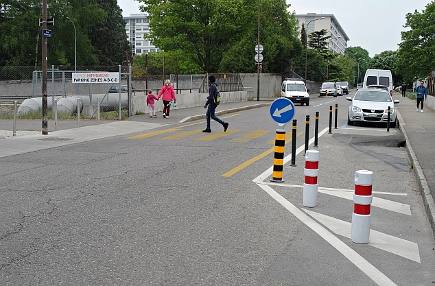 Autre aménagement en zone 30 réalisé par la Ville de Genève, un passage piéton au chemin des Sports, afin que les personnes passant du quartier de la Concorde au parc Hentsch puissent traverser en sécurité. Ce passage a été installé suite à une demande conjointe de de l’Association des Habitants de la Concorde, de l’Association des Zabouches et du Forum Démocratie participative.