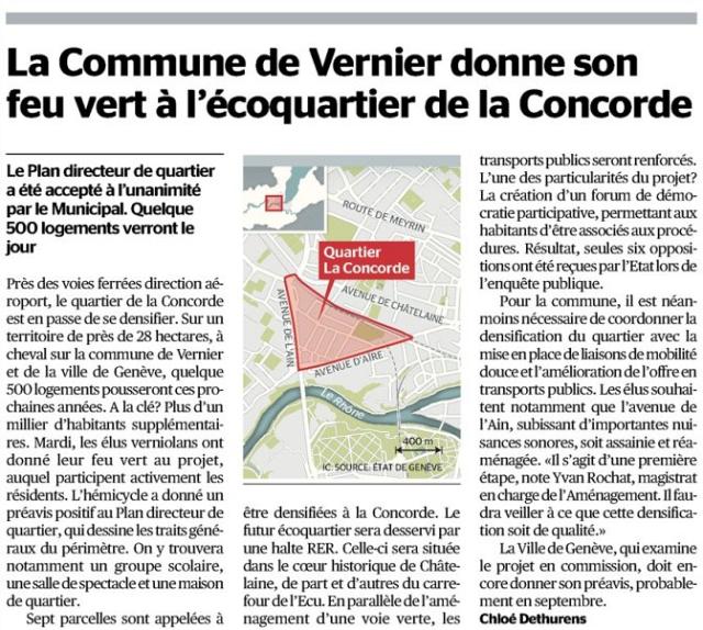 La Commune de Vernier donne son feu vert à l’écoquartier de la Concordelundi 1er juillet 2013, par