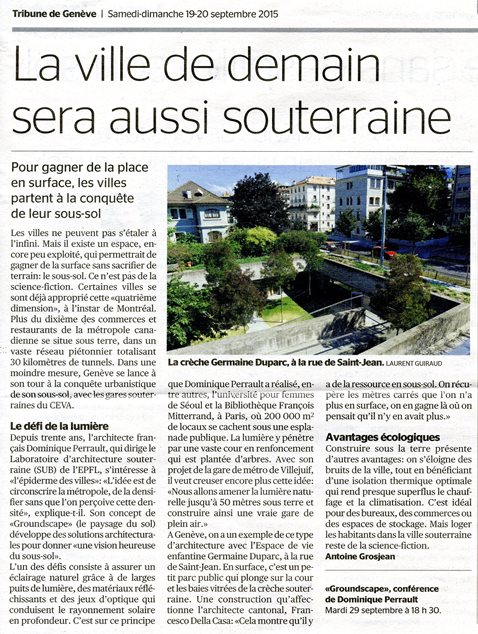 Ville Souterraine | Tribune de Genève - Urbanisme | Samedi-dimanche 19-20 septembre 2105 | Par Antoine Grosjean | page 4