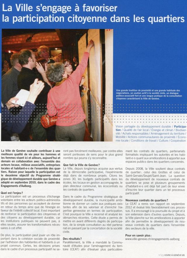 Accueil > Revue de presse > Vivre à Genève > La Ville s’engage à favoriser la participation citoyenne dans les quartiers