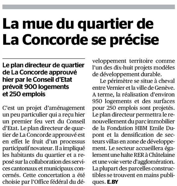 Quartier Concorde | Tribune de Genève | Jeudi 26 septembre 2013 | E.BY | page 21