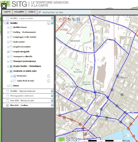 Les cartes interactives du SITG sont accessibles à tous. Chacun peut consulter les accidents qui sont survenus dans son quartier