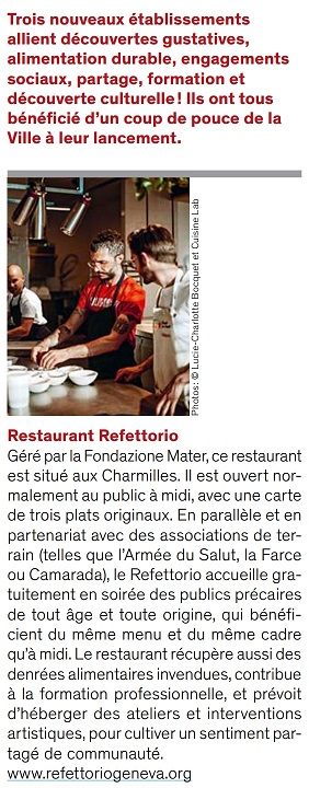 Quelques articles extraits du dernier Magazine « Vivre à Genève »