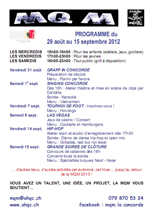 Accueil > Infos Quartier > Maison de Quartier mobile : programme du 29 août au 15 septembre 2012