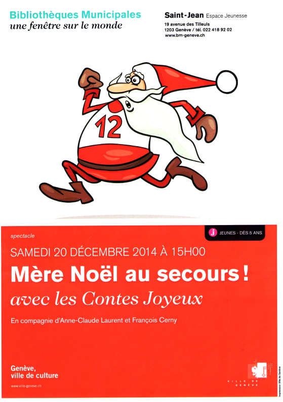 Samedi 20 décembre 2014, à l’espace jeunesse de la Bibliothèque de Saint-Jean, dès 5 ans.