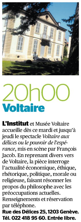Musée Voltaire : spectacle "Voltaire aux délices ou le pouvoir de l’espérance"