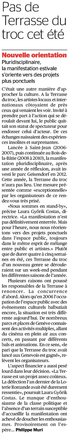 Accueil > Revue de presse > Tribune de Genève > Pas de Terrasse du troc cet été