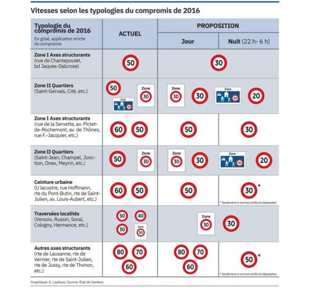 " ... Sans se généraliser totalement, la limitation de vitesse à 30 km/h devrait fortement se développer dans les zones habitées du canton de Genève cette année et l’an prochain. Serge Dal Busco a présenté jeudi les résultats d’une consultation lancée au printemps dernier afin d’utiliser cet outil pour réduire le bruit routier. En agissant sur plus de 300 artères, son Département des infrastructures espère soulager quelque 70’000 personnes exposées à des nuisances excessives au sens du droit fédéral. ..."