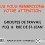Le groupe de travail "PLQ et rue de Saint-Jean" est toujours actif. Il se réunit lorsque l’actualité l’exige, notamment en lien avec le réaménagement complet de la rue de Saint-Jean - voir le compte-rendu de la soirée Forum du 6 décembre 2005.