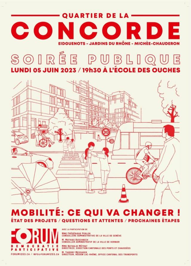 - Que la coordination puisse avancer entre les trois collectivités publiques (Canton et Villes de Vernier et de Genève) et avec le Forum sur ces questions de mobilité à la Concorde.