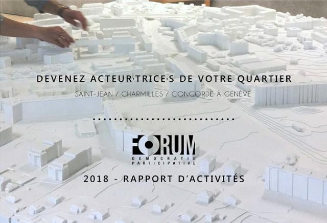 Les points forts de 2018, résumé des évènements organisés par le Forum et présentation des dossiers en cours dans le quartier : nouvelle édition du mémento de quartier, sécurité et accès au panorama sur le pont CFF de Saint-Jean, maquette du quartier de la Concorde, sécurité pour les piétons à la rue Camille-Martin, "Quartier en fête, quartier en chantier", etc.