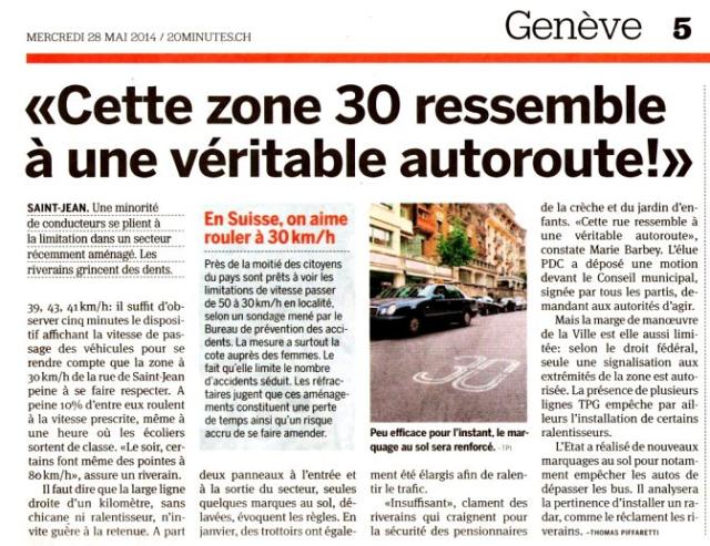 Accueil > Dossiers et débats > Mobilité, zones 30, transports publics > Zone 30 de St-Jean > Rue de Saint-Jean : limitation à 30 km/h pas respectée