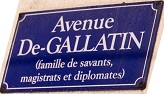 " ... Avenue De-Gallatin : Cette avenue reprend le même tracé que le chemin d’accès à la propriété De-Gallatin : le portail s’ouvrait sur l’avenue d’Aïre et la maison de maître se situait vers l’actuelle rue de la Nouvelle Héloïse. ... Société Immobilière Genevoise qui, en 1912, proposa à la commune de donner ces noms aux nouvelles rues créées par le morcellement de la campagne Gallatin ... "