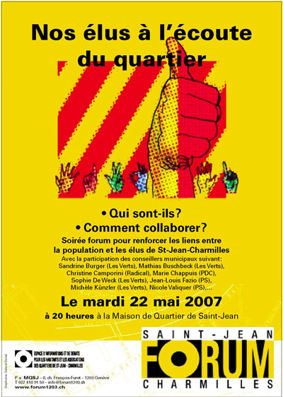 Quels moyens : l’Internet ? Le téléphone ? Des pétitions ? Des rencontres ? Rôle du Forum St-Jean-Charmilles ?