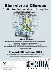 Habitants des immeubles et représentants des propriétaires : reprenons les questions en suspens de la soirée du 8 mai 2007 et cherchons ensemble des solutions pour améliorer la qualité de vie dans notre quartier. Venez nombreux !
