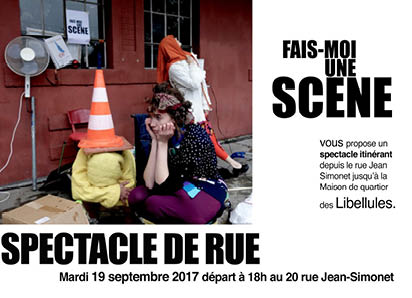 Chevalier. Puisant leur inspiration dans la vie ordinaire des quartiers, les artistes nous livre un spectacle de rue ambulatoire, qui s’alimente au grès des objets trouvés dans la rue. Ponctué de performances de danse, "fais-moi une scène" offre une balade poétique et questionne les objets abandonnés dans la rue et les liens tissés dans le quartier. Véritable trait d’union, cette performance artistique est le résultat d’une collaboration avec dans avec les habitante.s, la Maison de Quartier des Libellules et la Maison de Quartier Mobile de la Concorde.