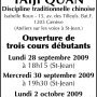 Note : il est encore possible pendant le mois d’octobre de rejoindre le cours débutant du mardi à 19h30.