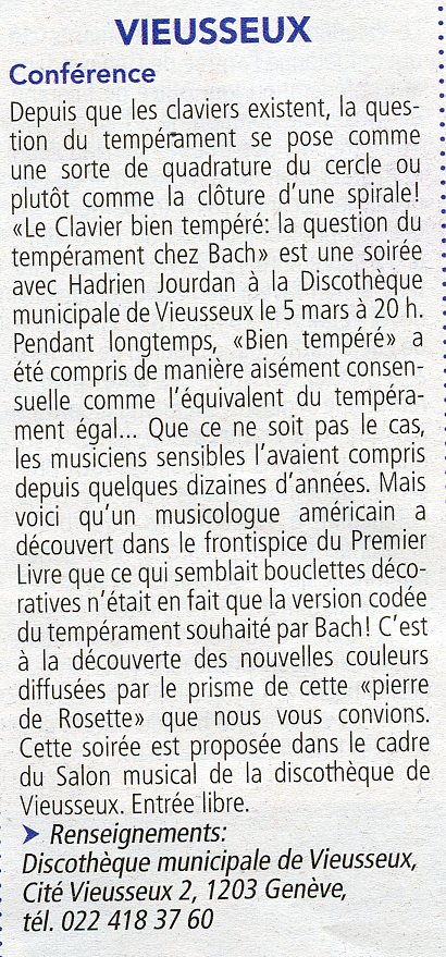 Tribune de Genève | Clavier Tempéré | Mercredi 5 mars 2014 | Suivez le Guide | Séverine Géroudet et Gabrielle Cottier | page 34