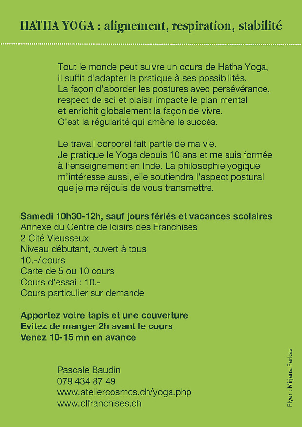 Pascale Baudin : 079 434 87 49 - www.ateliercosmos.ch/ - www.clfranchises.ch
